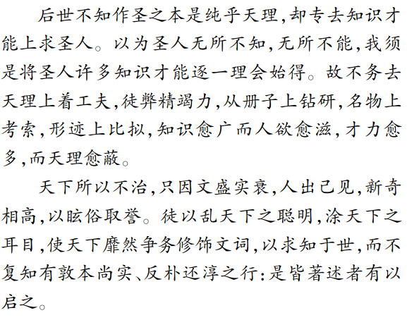 数年后,王阳明经过与学界的反复交流,又发现当时的学界也陷入了一种所谓“专去知识才能上求圣人”的现象;而这二者的一个共同指向,也就在于都背弃了理学所坚持的“存天理,灭人欲”的做人精神。比如他对学界的风气批评说: