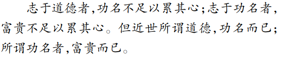 显然,在现实生活中,能够真正“志于道德者”毕竟是少数,大量的芸芸众生往往会沦落为以道德为旗号,而实际追求者又不过是功名富贵而已。这也就是现实生活中往往充斥着更多的乡愿或唯利是图之小人的原因。