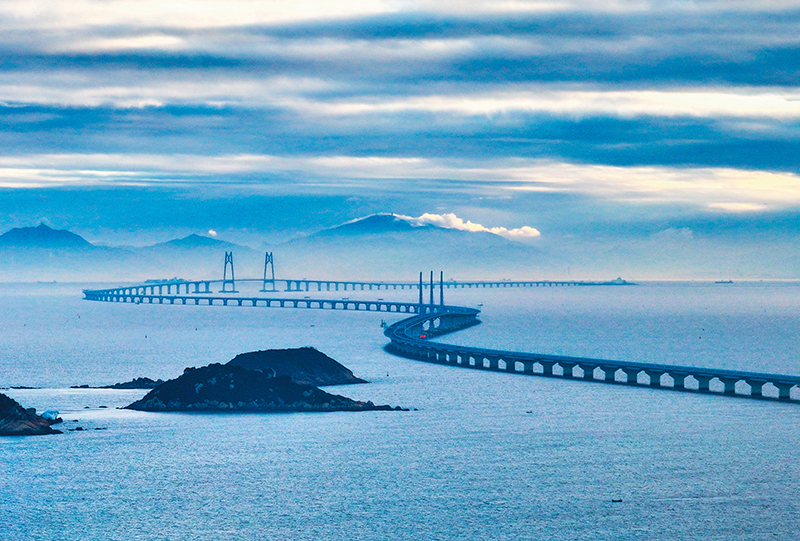 晨曦中的港珠澳大桥(2023年12月15日摄)刘大伟 摄 / 本刊