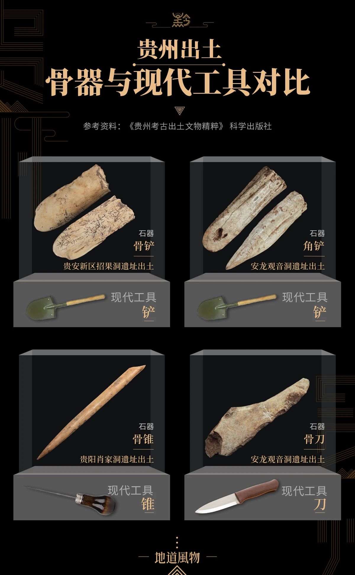 贵州出土骨器与现代工具对比。制图/九阳