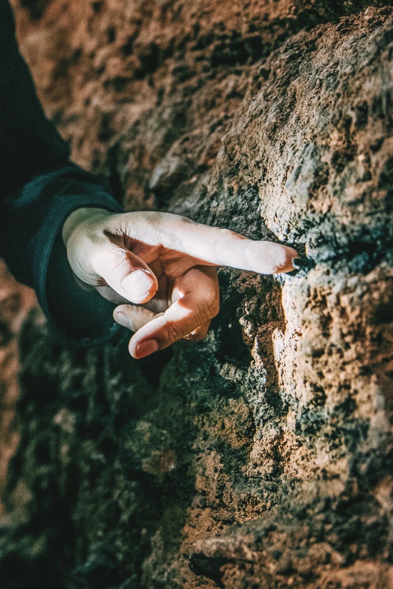 图中手指处即为招果洞里的用火痕迹。