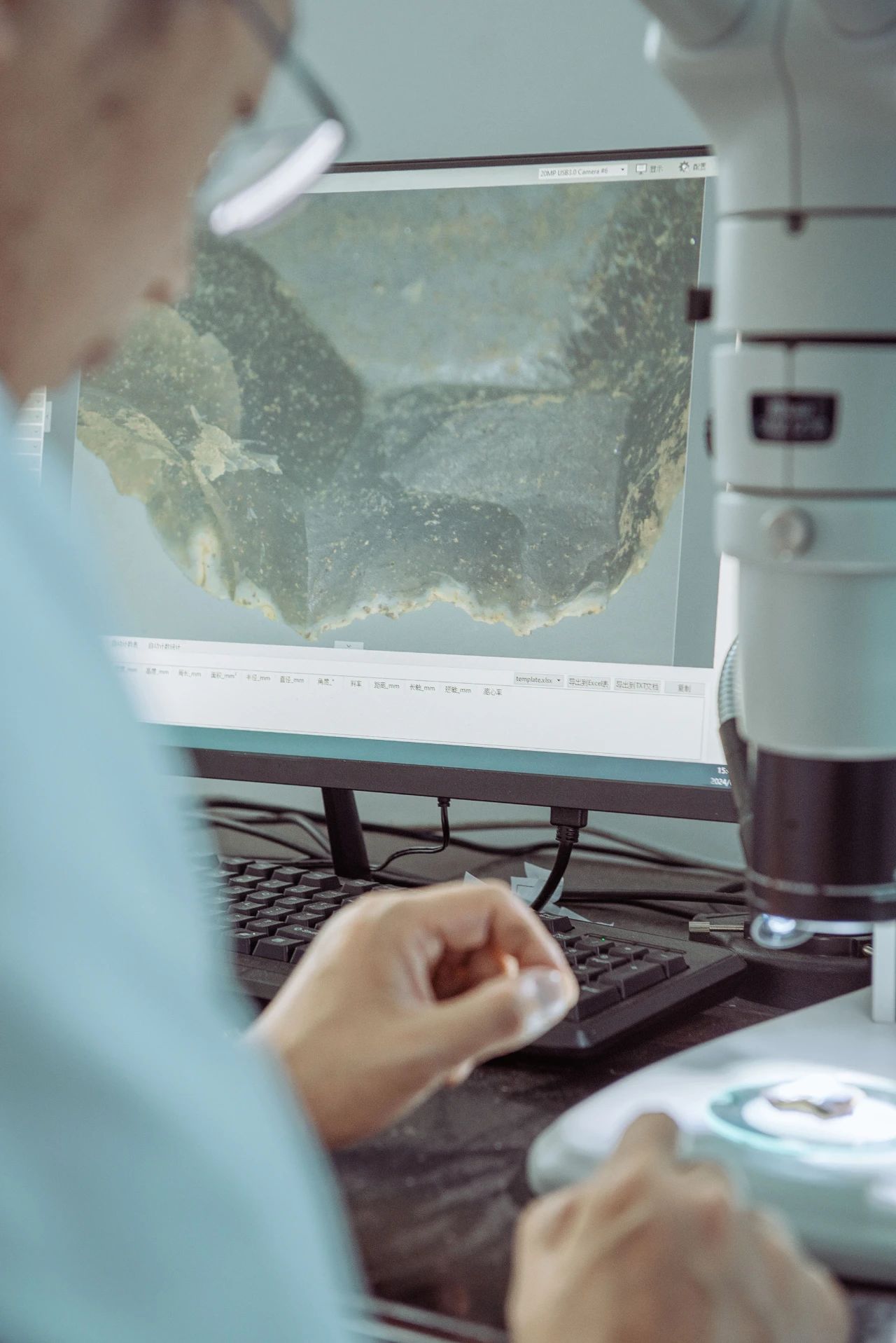 普定穿洞工作站,工作人员正在进行出土石器微距摄影。