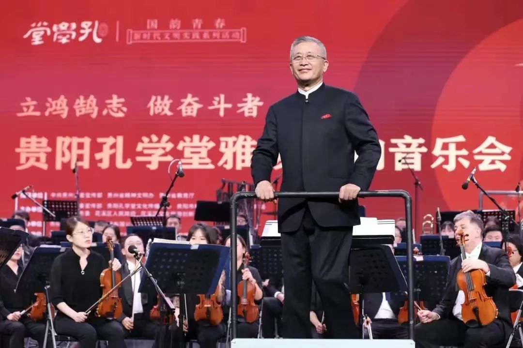 2024年4月29日,国家一级指挥,中国人民解放军军乐团原团长、音乐总监于海执棒贵阳交响乐团,为现场近900名师生带来一场经典爱国歌曲盛宴。
