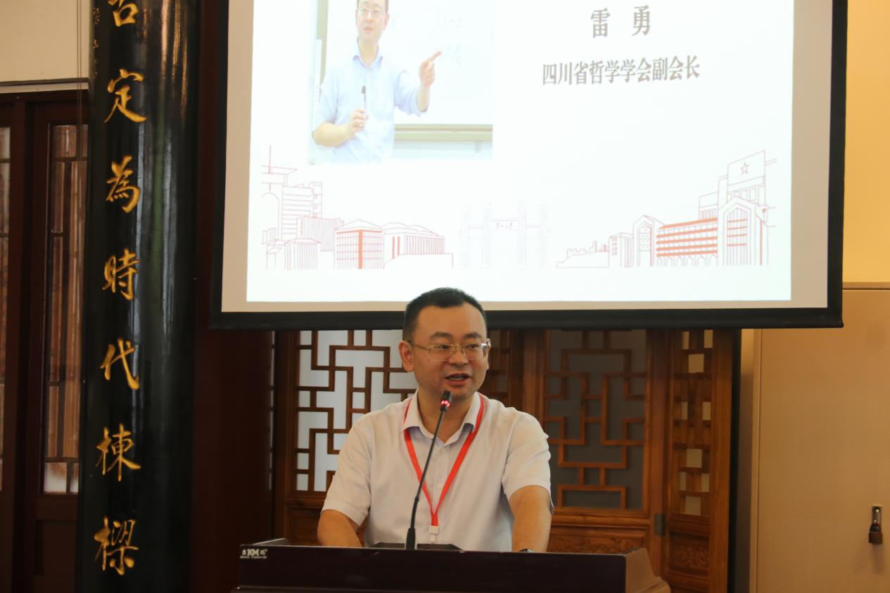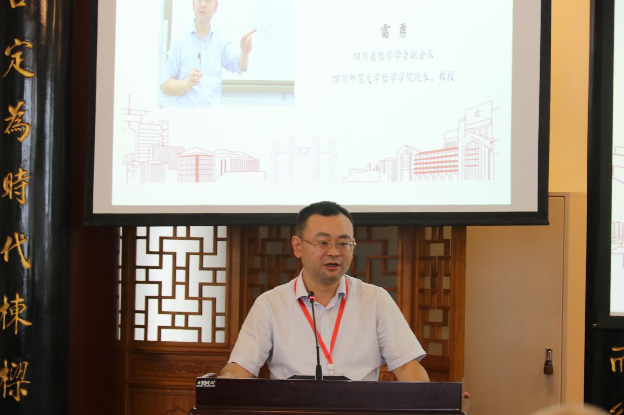 作为第五届多省哲学学会学术论坛的主办方,四川省哲学学会副会长雷勇教授代表多省哲学学会致辞。他分享了四川省哲学学会的发展概况,介绍四川师范大学、四川大学、西南民族大学等高校在哲学领域的特色研究方向,并以“三星堆文明的宇宙观”“李冰治水的道法自然智慧”为例,强调四川深厚的文化底蕴为哲学研究提供的丰富土壤。同时,雷勇教授发出诚挚邀请,希望各位专家学者明年齐聚成都,继续推动多省哲学学会的学术交流与合作。