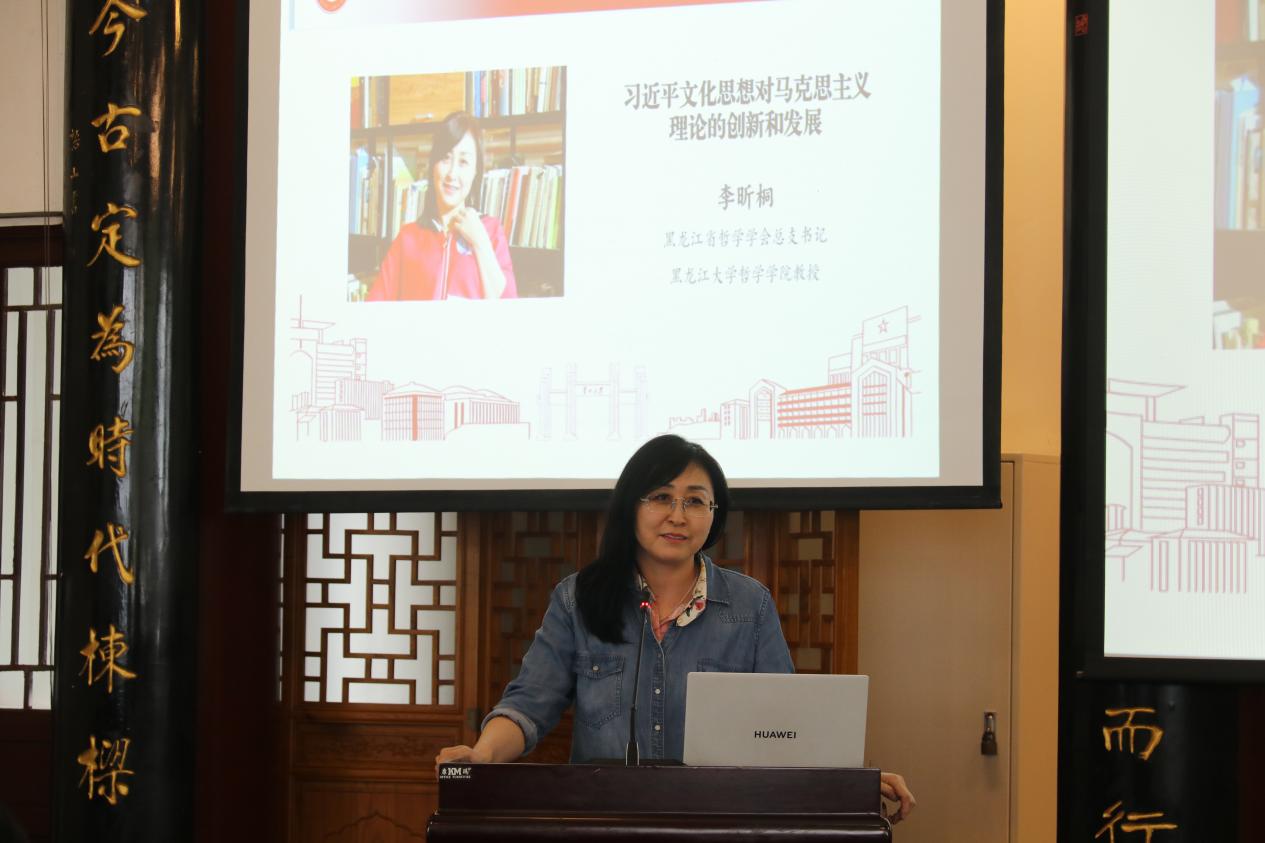 黑龙江省哲学学会总支书记、黑龙江大学哲学学院李昕桐教授聚焦《习近平文化思想对马克思主义理论的创新和发展》,从三个维度展开论述:一是习近平文化思想对马克思恩格斯文化理论中“人的本质对象化”命题的继承;二是对列宁、毛泽东文化思想中“民族性与阶级性”的发展,通过“第二个结合”实现辩证统一;三是对西方现代性文化危机的超越,在批判工具理性的同时构建中国特色社会主义文化体系。