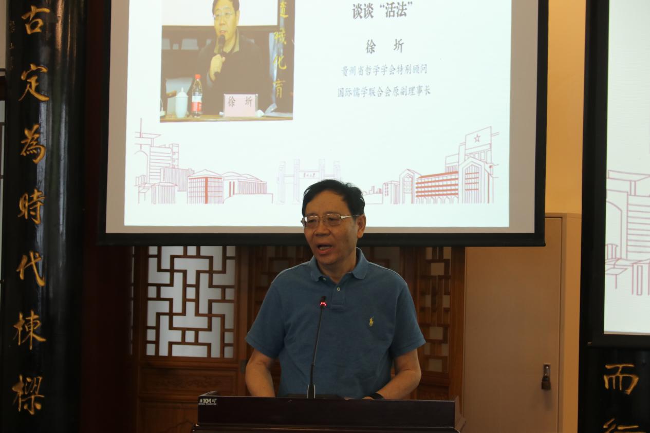 贵州省哲学学会特别顾问、国际儒学联合会原副理事长徐圻教授以《谈谈“活法”》为题,从李银河对人生意义的阐释、旅行者1号拍摄的“地球淡蓝小点”切入,探讨了“活法”的多元性与精神价值的重要性。他指出,人类文明的本质是“反自然”的创造性实践,既要承认趋利避害的本能,更要追求超越物质的精神使命,在利益与道义的平衡中实现人生的价值。