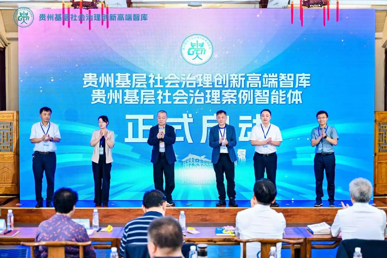 贵州基层社会治理创新高端智库特聘研究员谢寿光,中国社会工作教育协会副会长、贵州大学公共管理学院教授庄勇,贵州大学党委宣传部部长姚作舟,贵州大学人文社科处处长周乐欣,贵州大学公共管理学院党委书记王斌,贵州基层社会治理创新高端智库副主任段忠贤等共同为“贵州基层社会治理案例智能体”揭幕。贵州基层社会治理案例智能体是国内首个专注于基层治理研究的垂类大模型,通过海量鲜活案例的深度挖掘与全景式分析的社会学视角,解决海量基层治理案例难以系统化利用、传统案例研究效率低下与洞察深度不足的问题、个案经验碎片化难以形成全景式分析的问题。